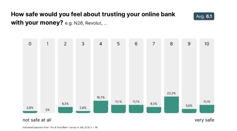 Online banks do not yet enjoy enough trust in advanced banking, mainly due to the “start-up feeling” and previously unknown patterns that make handling large sums in mobile apps feel uncomfortable.